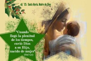 Santa María, Madre de Dios, ruega por nosotros.Santa María, Madre de la Iglesia, acompáñanos.Santa María, madre nuestra, bendícenos. «Cuando llegó la plenitud de los tiempos,